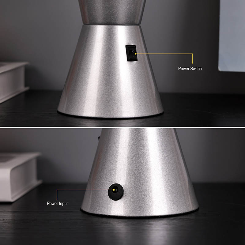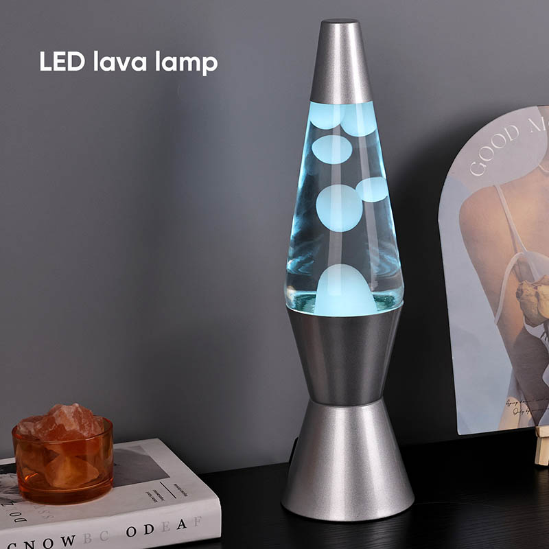 15 इंच RGB LED लावा दिव्याच्या तळाशी 7 रंग बदलतात. लाव्हासह रंग पांढरा आहे.