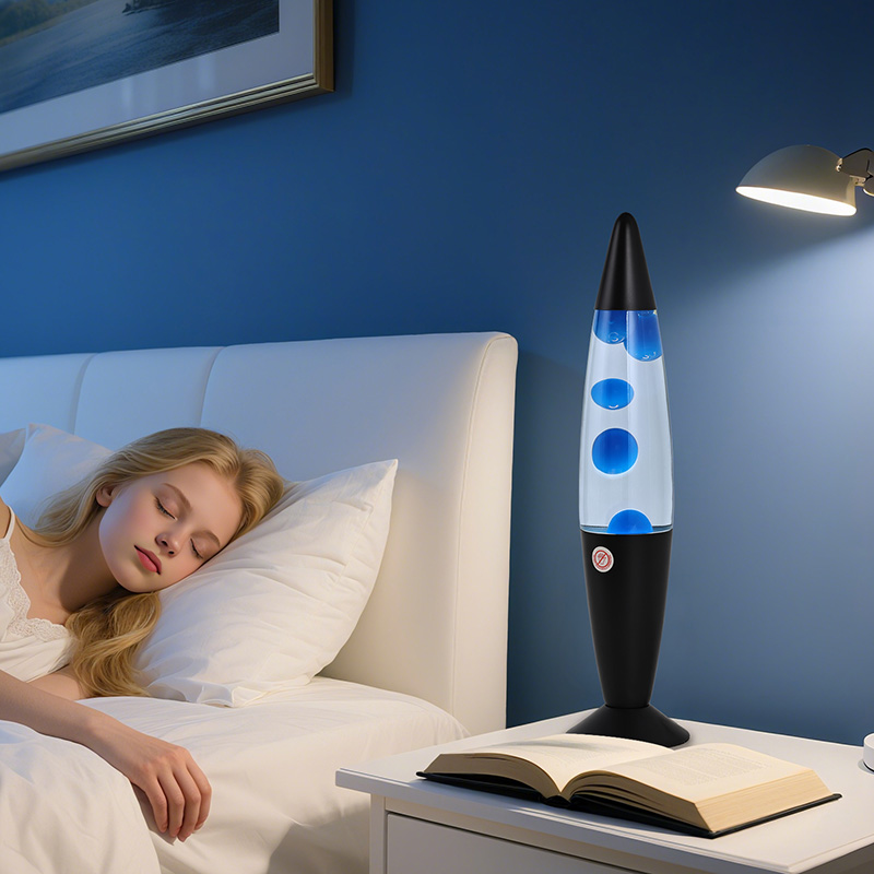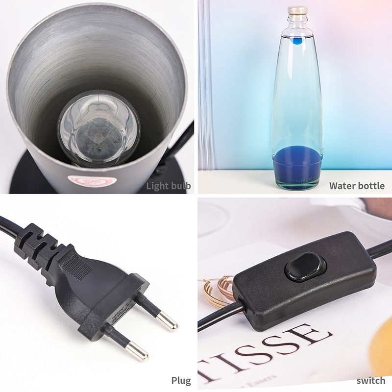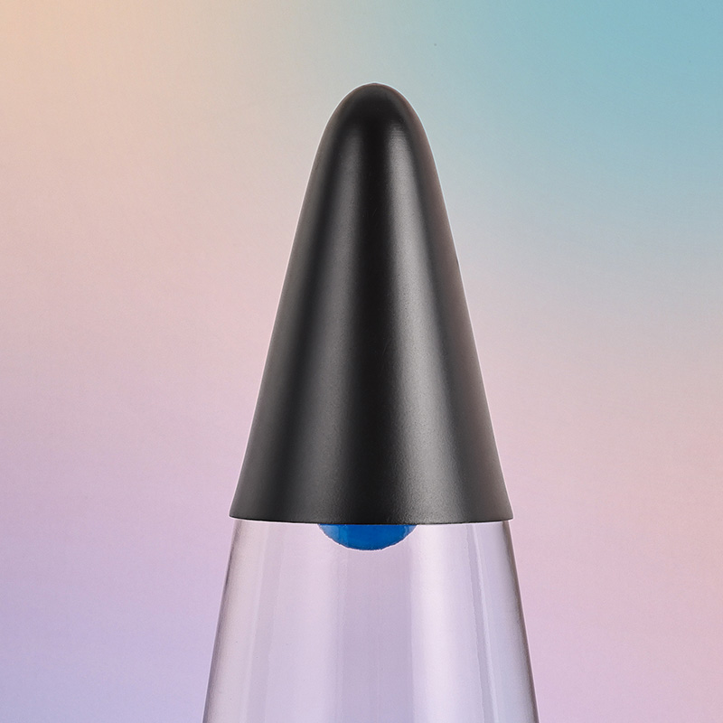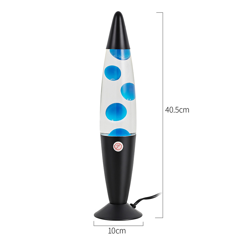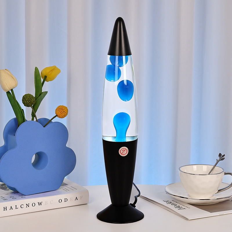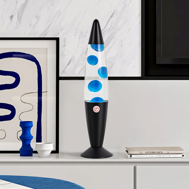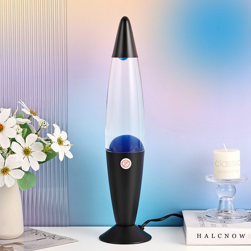 16 इंच ब्लॅक शेड निळा लावा दिवा हा हायट पॉवर प्लग इन आहे. जांभळा जांभळा ॲल्युमिनियम शेल, जांभळा मेण, जेव्हा पेटतो तेव्हा शुद्ध जांभळा मेण दिवा.