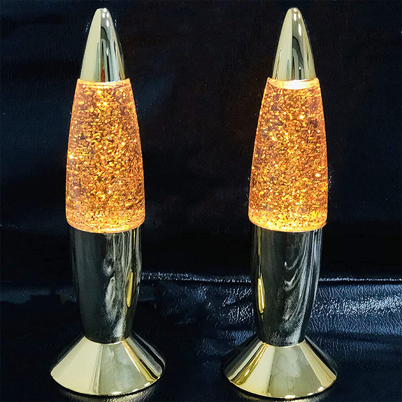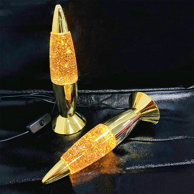 7 इंच ग्लिटर दिव्यामध्ये बाटलीच्या आत द्रव असतो. गरम झाल्यानंतर द्रव अनियमितपणे हलतो. वेगवेगळ्या इंच आणि वेगवेगळ्या रंगाच्या शैलीतील बाटली आहेत.