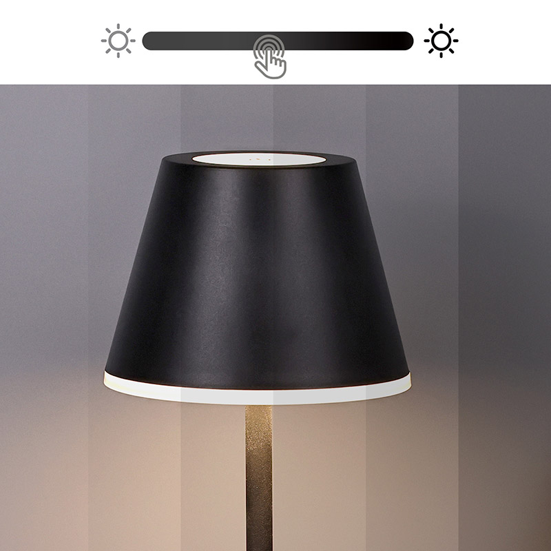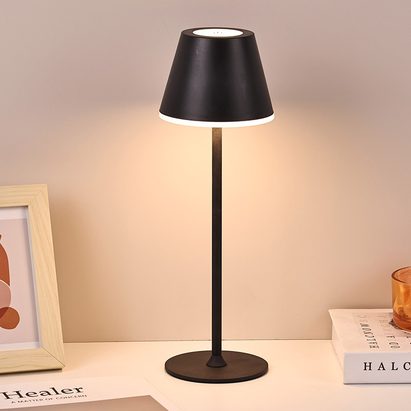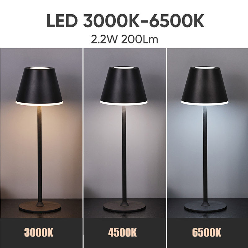 असेंबली कॉर्डलेस एलईडी टेबल लॅम्प हे शेड सेंटरच्या शीर्षस्थानी एक टच बटण आहे. खाली असलेल्या चित्राप्रमाणेच लाइट्सचे स्विच आणि तीन हलके रंगांचे रूपांतरण नियंत्रित करू शकतात.