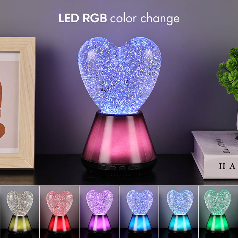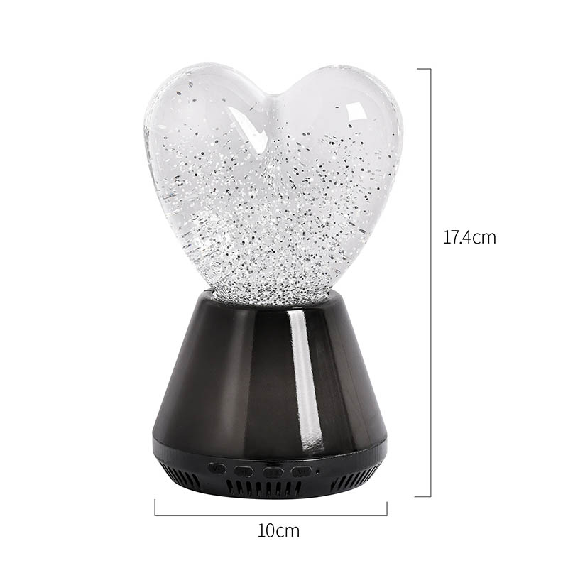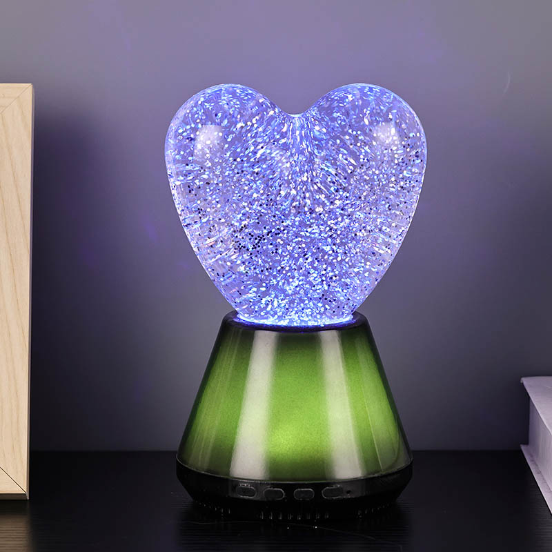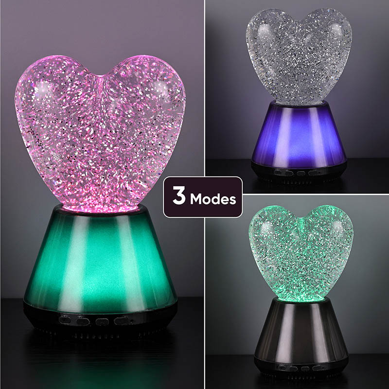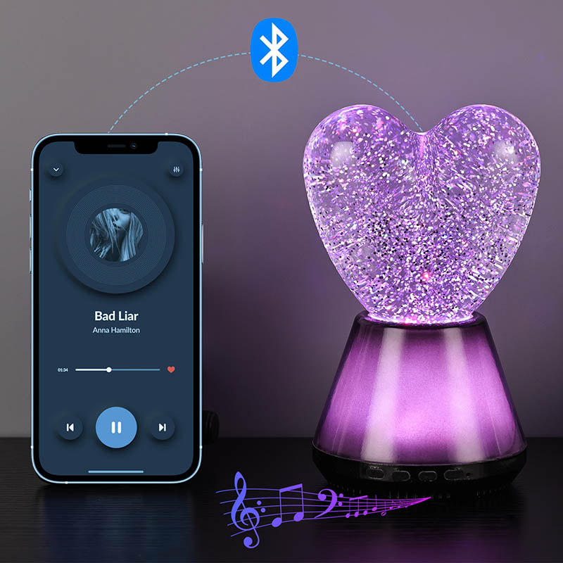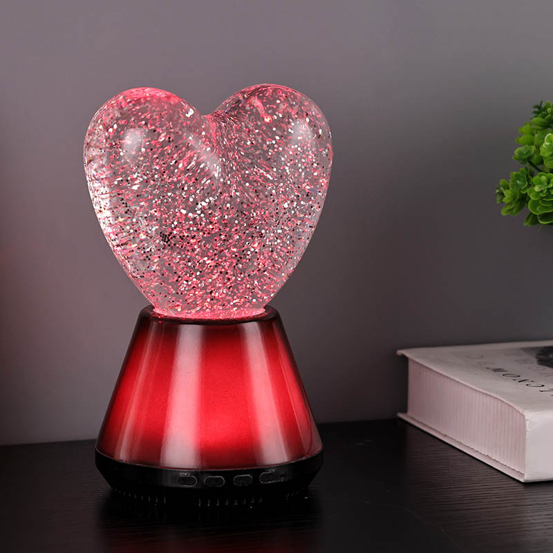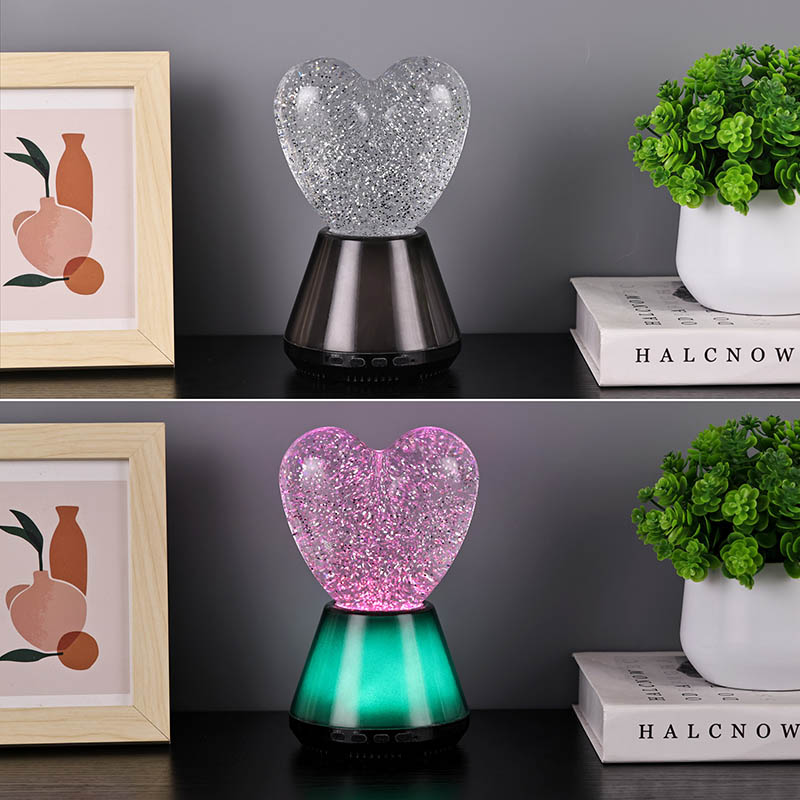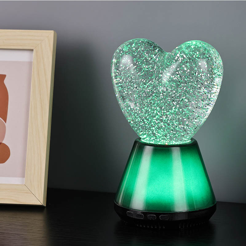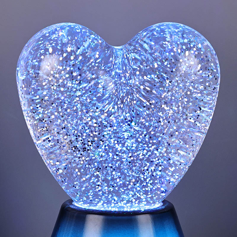ब्लूटूथ कंट्रोल लेड ग्लिटर हार्ट नाईट लाइटचा आतील भाग एक रहस्यमय द्रवाने भरलेला आहे, ज्यामध्ये अगणित स्पार्कलिंग सेक्विन तरंगतात. दिवा चालू केल्यावर, द्रव हृदयाच्या आकाराच्या काचेच्या बॉलमध्ये हळूहळू वाहू लागेल, ज्यामुळे स्वप्नासारखा प्रभाव निर्माण होईल. हे sequins विखुरलेल्या ताऱ्यांसारखे दिसतात, हळुवारपणे द्रवात तरंगत आहेत, ज्यामुळे लोकांना तारेमय आकाशात असल्याचा अनुभव येतो. दिवस असो किंवा रात्र, हृदयाच्या सावलीसह ते मुलांना आश्चर्य आणि आनंद आणू शकते, ज्यामुळे त्यांना स्वप्नातील प्रकाशात त्यांची कल्पनाशक्ती मुक्त करता येते.