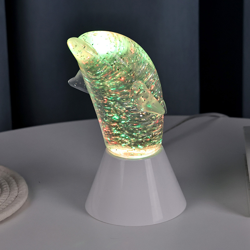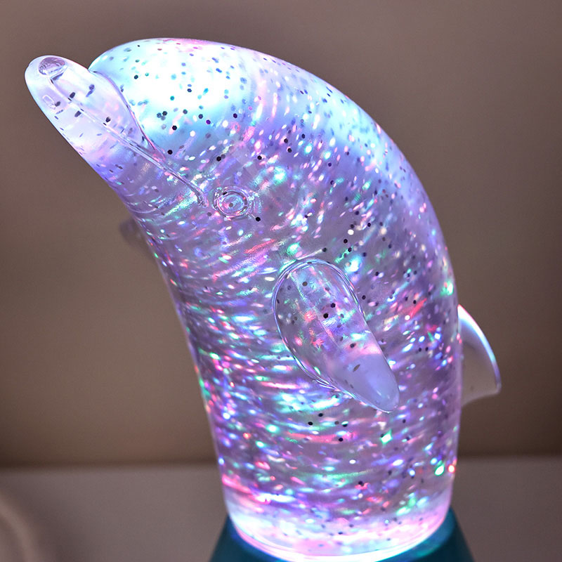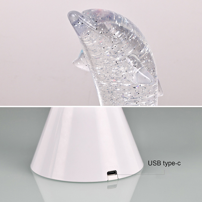 डॉल्फिन किड गिफ्ट ग्लिटर आरजीबी नाईट लाइट एका गोंडस डॉल्फिनच्या आकारात डिझाइन केले आहे, गुळगुळीत रेषा आणि उत्कृष्ट तपशील डॉल्फिनची चपळ मुद्रा उत्तम प्रकारे पुनर्संचयित करतात. पारदर्शक डॉल्फिन शेलच्या आत, सेक्विनच्या आकारात अनियमित हालचाली रंगांना सुंदर प्रतिबिंबित करू शकतात, शांत आणि रहस्यमय वातावरण तयार करतात. प्रत्येक वेळी जेव्हा तुम्ही या दिव्याकडे पाहता, तेव्हा असे वाटते की तुम्ही एका खोल महासागरात आहात, निसर्गाचे अनंत आकर्षण अनुभवा, प्रगत RGB रंग बदलणारे प्रकाश तंत्रज्ञानासह सुसज्ज, तुम्हाला मुक्तपणे अनेक रंगांमध्ये स्विच करण्याची परवानगी देते. उबदार केशरी, रोमँटिक गुलाबी किंवा शांत निळा असो,