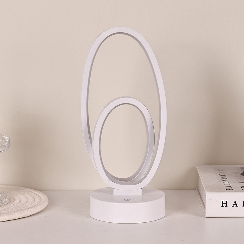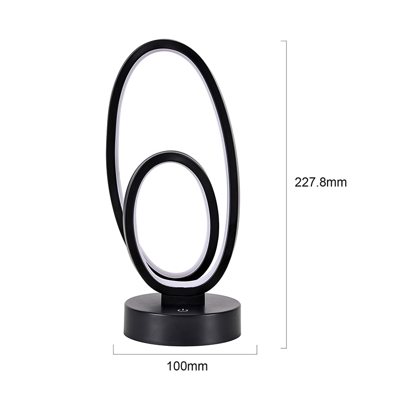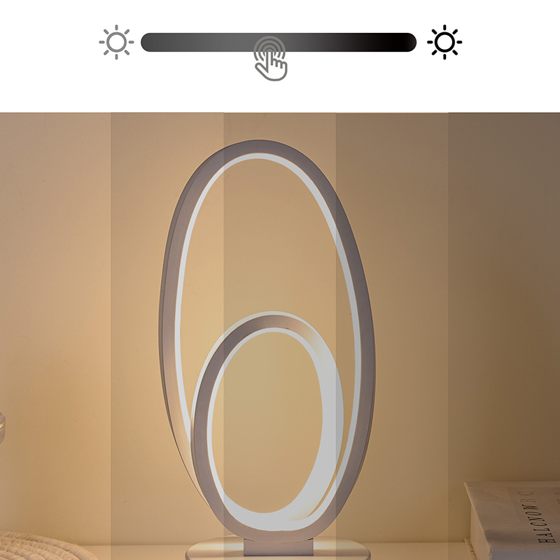 44*33*H23.5cmदुहेरी वर्तुळाकार रिंग शेड आरजीबी डेस्क लॅम्पमध्ये दुहेरी-रिंग डिझाइन आहे, ज्यामध्ये मिनिमलिस्ट रेषा द्वारे रेखांकित केलेले मोहक रूपरेषा आहेत. धातू आणि उच्च-गुणवत्तेचे प्लास्टिक एकत्र करून, ते अपवादात्मक पोत आणि एक नाजूक स्पर्श देते. प्रकाश साधन असण्यापलीकडे, ते