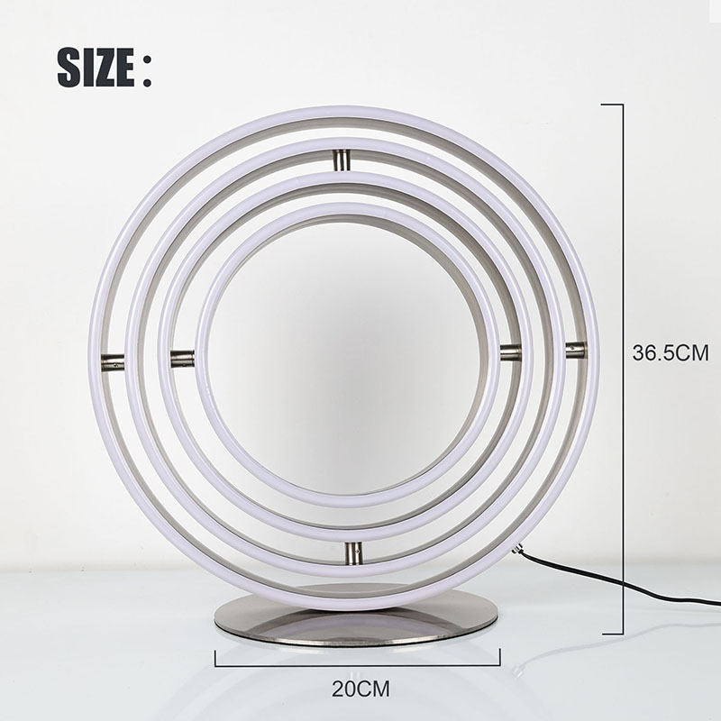 मल्टी-रिंग एलईडी डेकोरेटिव्ह टेबल लॅम्प आधुनिक डिझाइन आणि व्यावहारिक कार्यक्षमतेचा दाखला आहे. त्याच्या मनमोहक प्रदर्शन आणि टिकाऊ बांधकामामुळे, हे कोणत्याही घरासाठी योग्य जोड आहे. आजच तुमची राहण्याची जागा अपग्रेड करा आणि या दिव्यामुळे येणारे सौंदर्य आणि आश्चर्य अनुभवा.