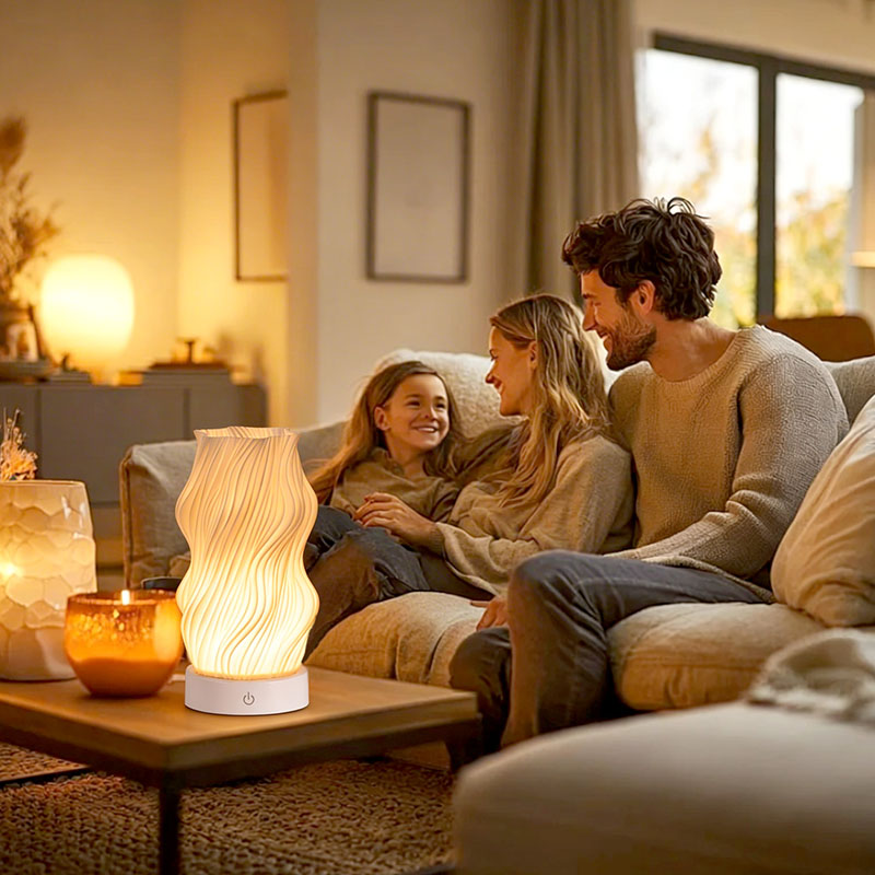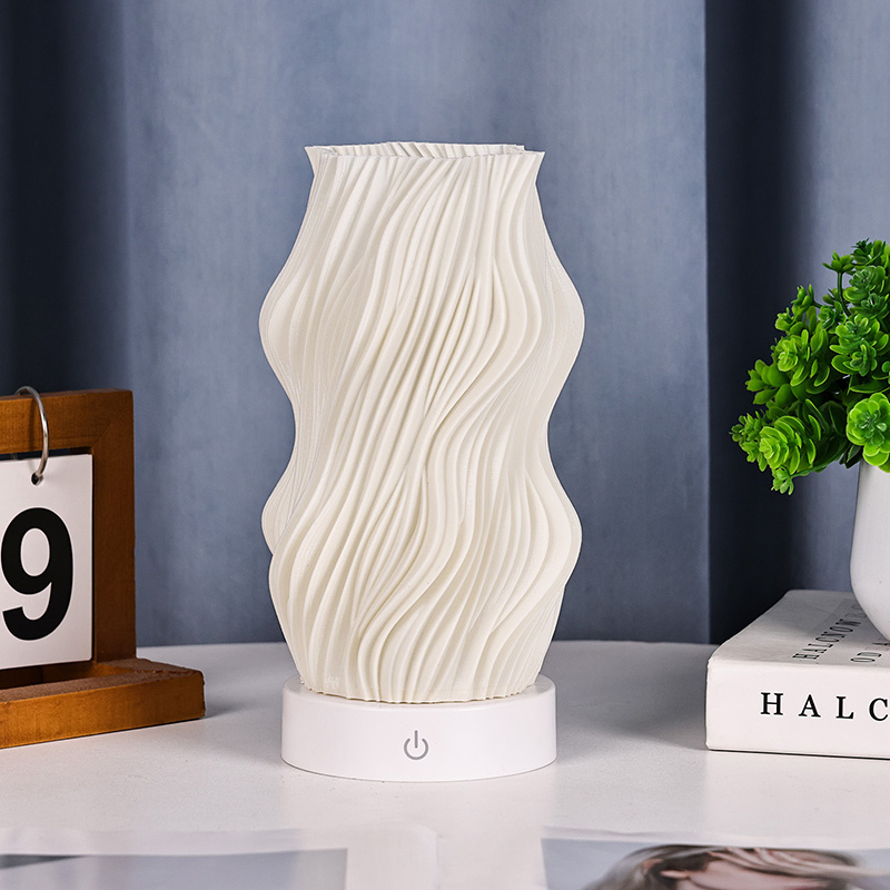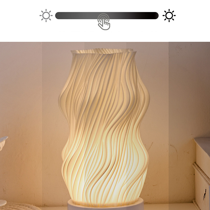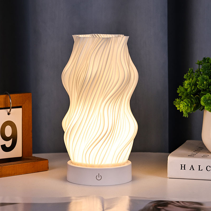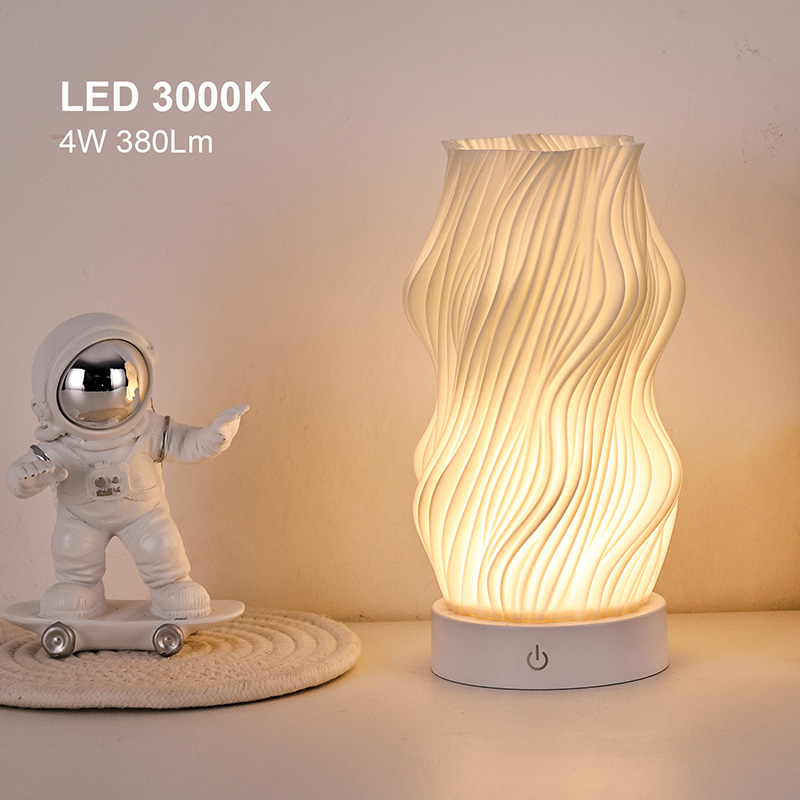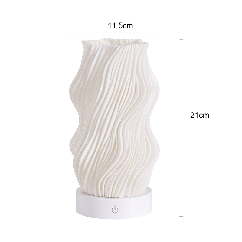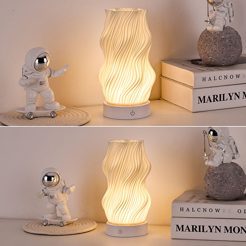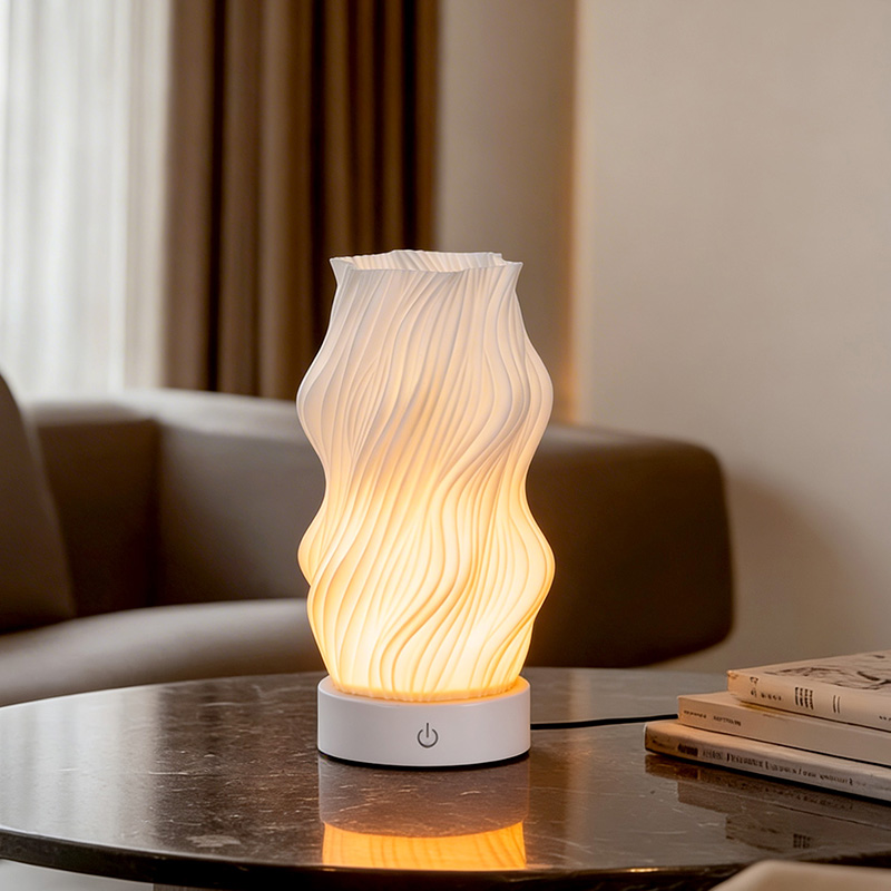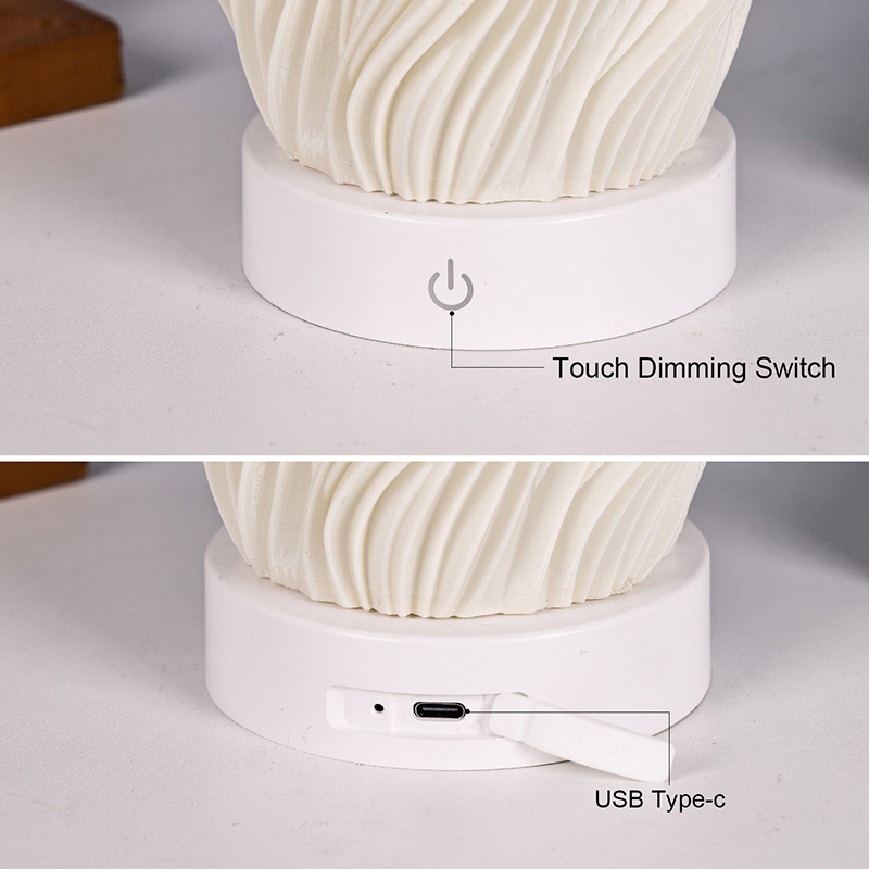 प्रीमियम प्लास्टिकपासून तयार केलेला, फ्लेम नाईट लाइट टेबल लॅम्प बॉडी (कॉम्पॅक्ट) आणि हलका आहे. हे केवळ स्पर्शाने उबदार वाटत नाही तर स्वच्छ आणि हलविणे देखील सोपे आहे. मिनिमलिस्ट वेव्ही टेक्सचर डिझाइन कलात्मक सौंदर्याला व्यावहारिकतेसह एकत्रित करते, कोणत्याही घराच्या सजावट शैलीमध्ये सहजतेने मिसळते. हा एक परिपूर्ण, जागा वाचवणारा ॲक्सेंट पीस आहे जो तुमच्या खोलीला अभिजाततेचा स्पर्श जोडतो.