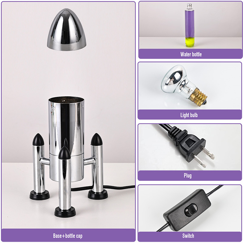 लहान मुलांसाठी खेळणी असो किंवा प्रौढांसाठी सजावट असो, हा रॉकेटच्या आकाराचा जांभळ्या पाण्याचा पिवळा मेणाचा दिवा तुमच्या जीवनात एक उज्ज्वल जागा बनू शकतो. त्याची अनोखी रचना त्याच्या मंत्रमुग्ध करणाऱ्या तेजासह, ते केवळ तुमच्या घरातील वातावरणात मजा आणि चैतन्य जोडत नाही, तर तुम्ही आणि तुमचे कुटुंब आणि मित्र यांच्यातील संभाषणाचा केंद्रबिंदू देखील बनते.