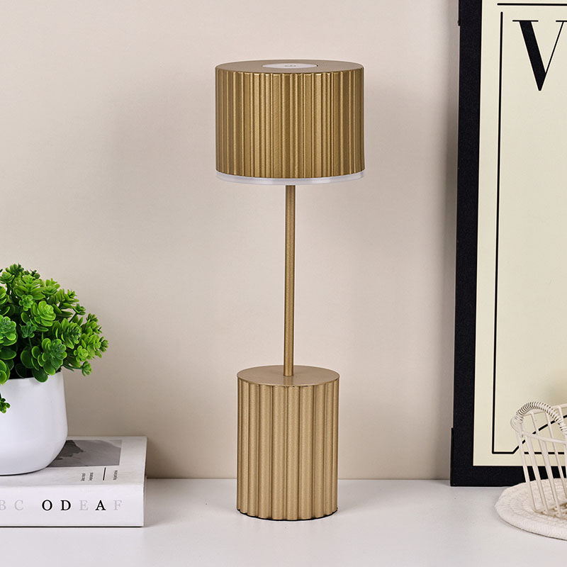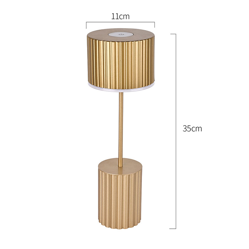बॅटरीसह मेटल शेडचा छोटा टेबल दिवा उच्च-गुणवत्तेच्या धातूच्या साहित्याचा बनलेला आहे, ज्याच्या पृष्ठभागावर बारीक पॉलिश आणि प्रक्रिया केली गेली आहे, एक गुळगुळीत आणि नाजूक पोत आणि मोहक चमक आहे. सोने, चांदी किंवा इतर क्लासिक रंग असोत, ते विविध आतील सजावट शैलींमध्ये उत्तम प्रकारे मिसळू शकतात, आधुनिक आणि विलासी वातावरण तयार करतात.