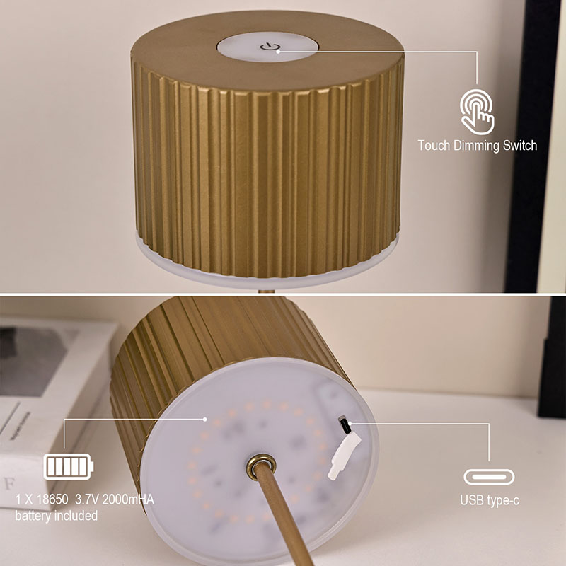 टच स्विच (टाइप-सी चार्ज)वेगवेगळ्या परिस्थितींच्या प्रकाशाच्या गरजा पूर्ण करण्यासाठी, बॅटरीसह मेटल शेडचा छोटा टेबल दिवा प्रगत 3-स्पीड डिमिंग फंक्शनसह सुसज्ज आहे. सोप्या ऑपरेशन्ससह, आपण प्रकाशाची तीव्रता मुक्तपणे समायोजित करू शकता.