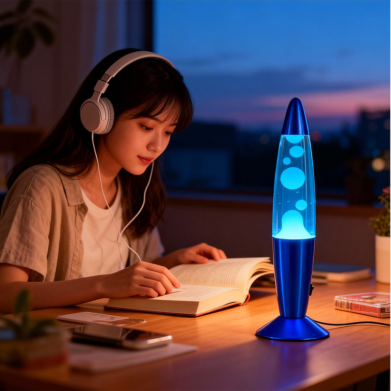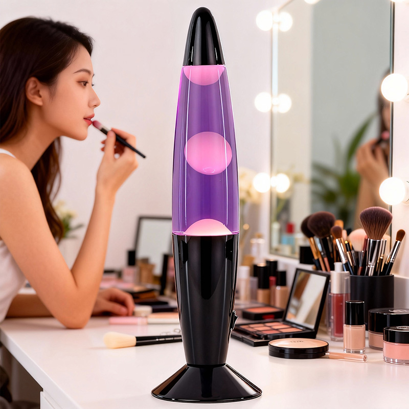 मेणाचा सौम्य प्रवाह, उबदार अंतर्गत एलईडी बल्बद्वारे प्रकाशित, एक मऊ, सभोवतालची चमक निर्माण करतो ज्यामुळे विश्रांती वाढते आणि तणाव कमी होतो. तुम्ही दिवसभर आराम करत असाल किंवा शांत क्षणांमध्ये प्रेरणा शोधत असाल, लावा दिव्याची लयबद्ध हालचाल एक शांत दृश्य अनुभव देते.