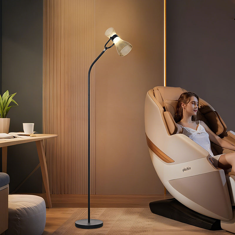 स्त्रोतांमध्ये समायोज्य ब्राइटनेसचे कार्य देखील आहे. साध्या ऑपरेशनसह, आपण वेगवेगळ्या गरजा आणि दृश्यांनुसार प्रकाशाची ताकद मुक्तपणे समायोजित करू शकता. तुम्हाला पुस्तके वाचण्यासाठी तेजस्वी प्रकाश हवा असेल किंवा रोमँटिक वातावरण तयार करण्यासाठी मऊ प्रकाश हवा असेल, काचेच्या सावलीसह आधुनिक एलईडी फ्लोअर दिवा तुमच्या गरजा सहज पूर्ण करू शकतो.