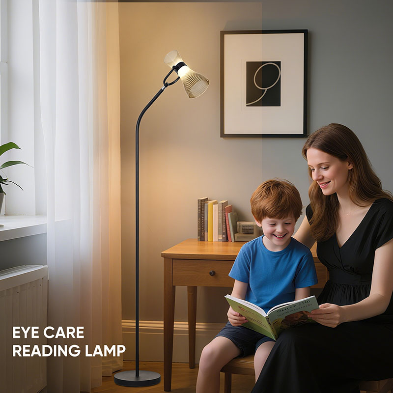 काचेच्या सावलीसह आधुनिक एलईडी फ्लोअर दिवा प्रगत एलईडी प्रकाश स्रोतांसह सुसज्ज आहे जो मऊ आणि तेजस्वी प्रकाश उत्सर्जित करतो, प्रभावीपणे आपल्या डोळ्यांचे संरक्षण करतो आणि डोळ्यांच्या दीर्घकाळ वापरामुळे थकवा आणि अस्वस्थता कमी करतो.