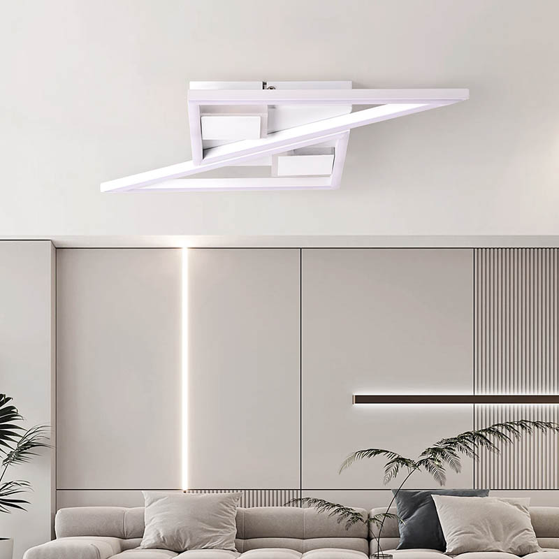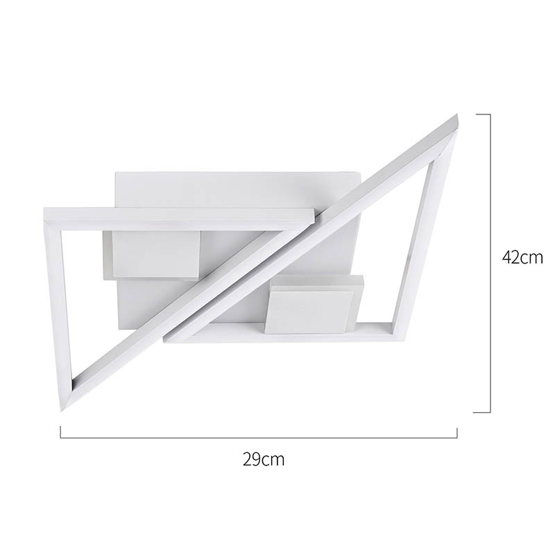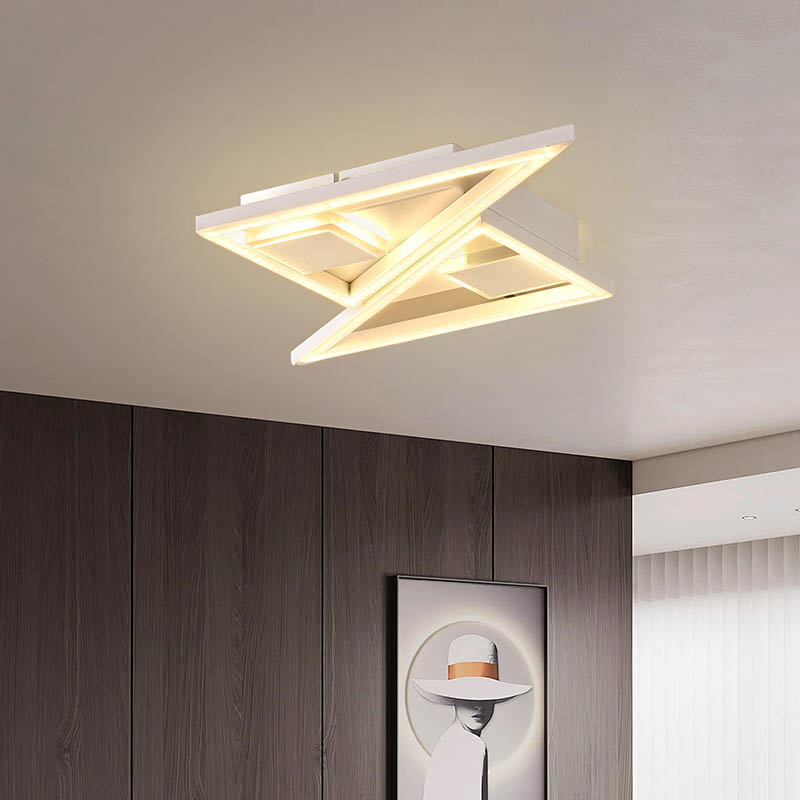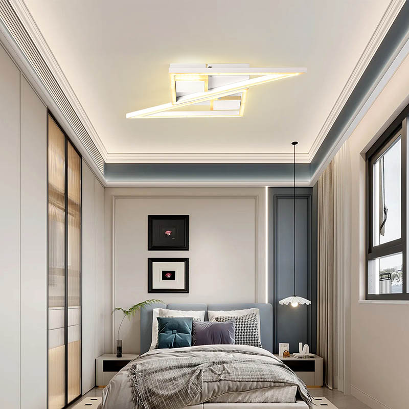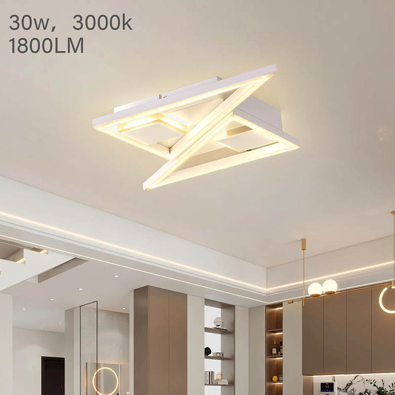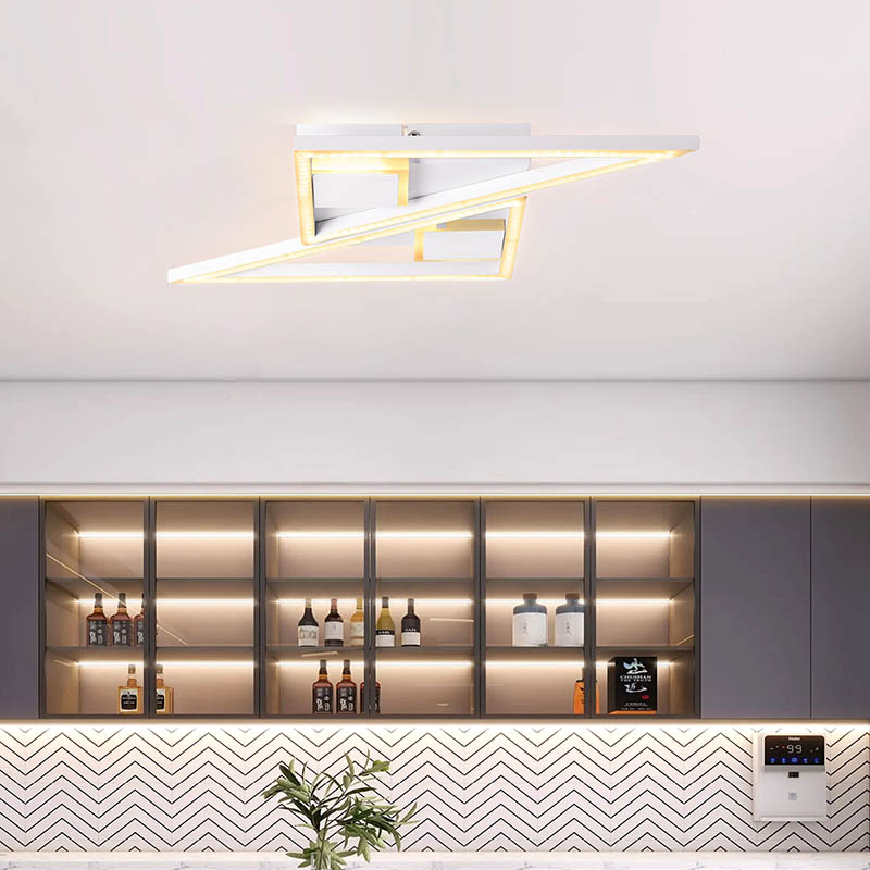 आधुनिक साध्या डिझाईन वॉर्म लाइट मेटल सीलिंग लॅम्पमध्ये एक आकर्षक भौमितिक डिझाइन आहे, ज्याला छेदणारे विमान आणि कोन आधुनिक अभिजाततेची भावना निर्माण करतात. डिझाईनच्या स्वच्छ रेषा आणि किमान सौंदर्यामुळे ते समकालीन आतील सजावटीसाठी योग्य बनते. दिव्याची रचना, प्रामुख्याने टिकाऊ प्लास्टिकपासून बनलेली, सुलभ स्थापनेसाठी हलके प्रोफाइल राखून दीर्घकाळ टिकणारी कामगिरी सुनिश्चित करते.