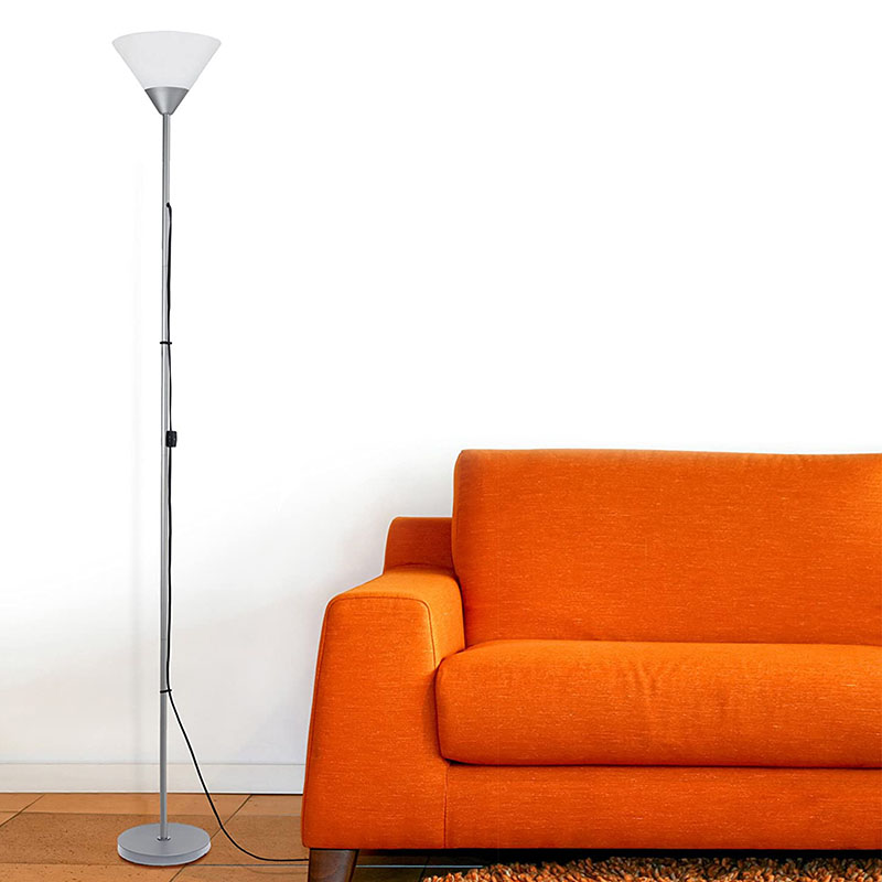 उच्च-गुणवत्तेच्या सामग्रीपासून तयार केलेल्या, बहुमुखी एलईडी फ्लोअर लॅम्पमध्ये एक मजबूत धातूची फ्रेम आणि टिकाऊ प्लास्टिकची छटा आहे. त्याची मिनिमलिस्ट डिझाईन हे सुनिश्चित करते की ते आधुनिक, पारंपारिक किंवा निवडक कोणत्याही आतील सजावटीमध्ये अखंडपणे बसते. दिव्याची सिंगल रॉड रचना स्थिरता आणि स्वच्छ सौंदर्य प्रदान करते, तर शंकूच्या आकाराची सावली प्रकाश वरच्या दिशेने निर्देशित करते, एक आरामदायक वातावरण तयार करते.