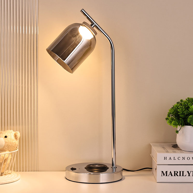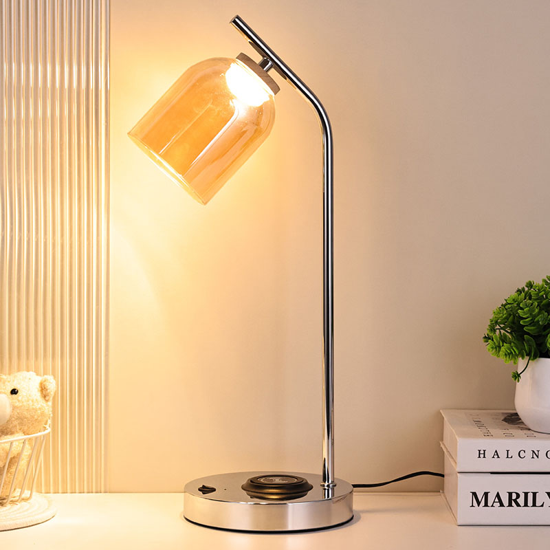मेटल स्लिव्हर बेस आणि बॉडीसह ग्लास शेडसह QI led डेस्क दिवा