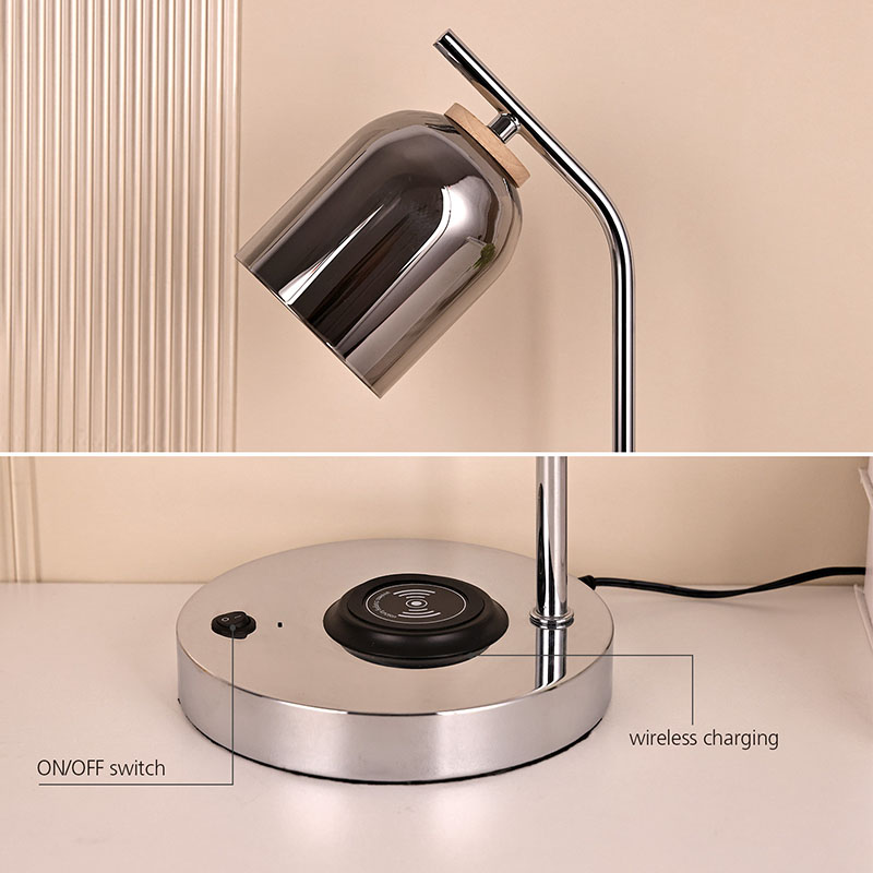 तुमच्या सोयीसाठी, काचेच्या शेडसह QI led डेस्क दिवा देखील मेटल वायरलेस मोबाइल फोन चार्जिंग बेससह सुसज्ज आहे. कंटाळवाणा प्लगिंग ऑपरेशन्स न करता, जलद चार्जिंगसाठी फक्त वायरलेस चार्जिंग सक्षम फोन बेसवर हळूवारपणे ठेवा. वायरलेस चार्जिंग तंत्रज्ञान केवळ वापराची सोयच सुधारत नाही तर गोंधळलेल्या तारांची समस्या देखील टाळते, ज्यामुळे तुमचा डेस्कटॉप अधिक नीटनेटका आणि सुंदर होतो. याव्यतिरिक्त, मेटल बेसमध्ये चांगली उष्णता नष्ट करण्याची कार्यक्षमता आहे, चार्जिंग प्रक्रियेची सुरक्षितता आणि विश्वासार्हता सुनिश्चित करते