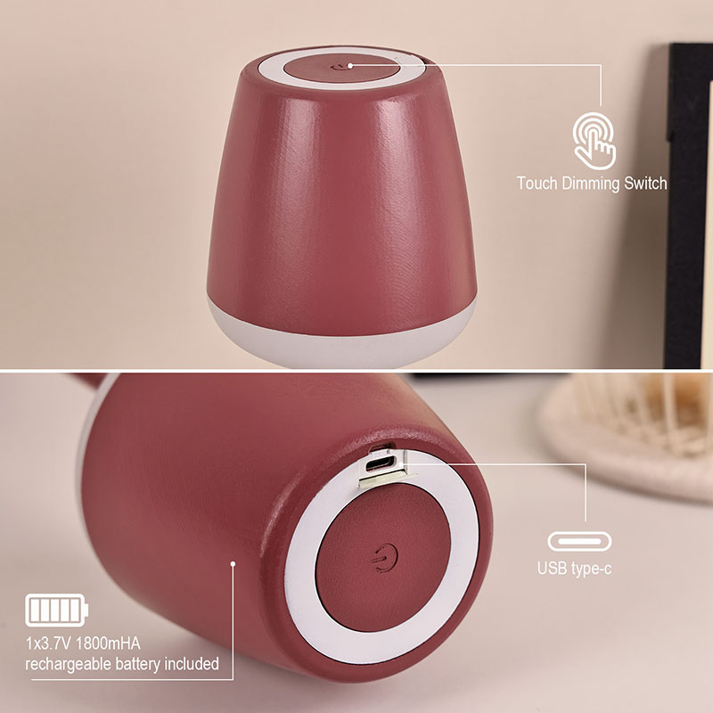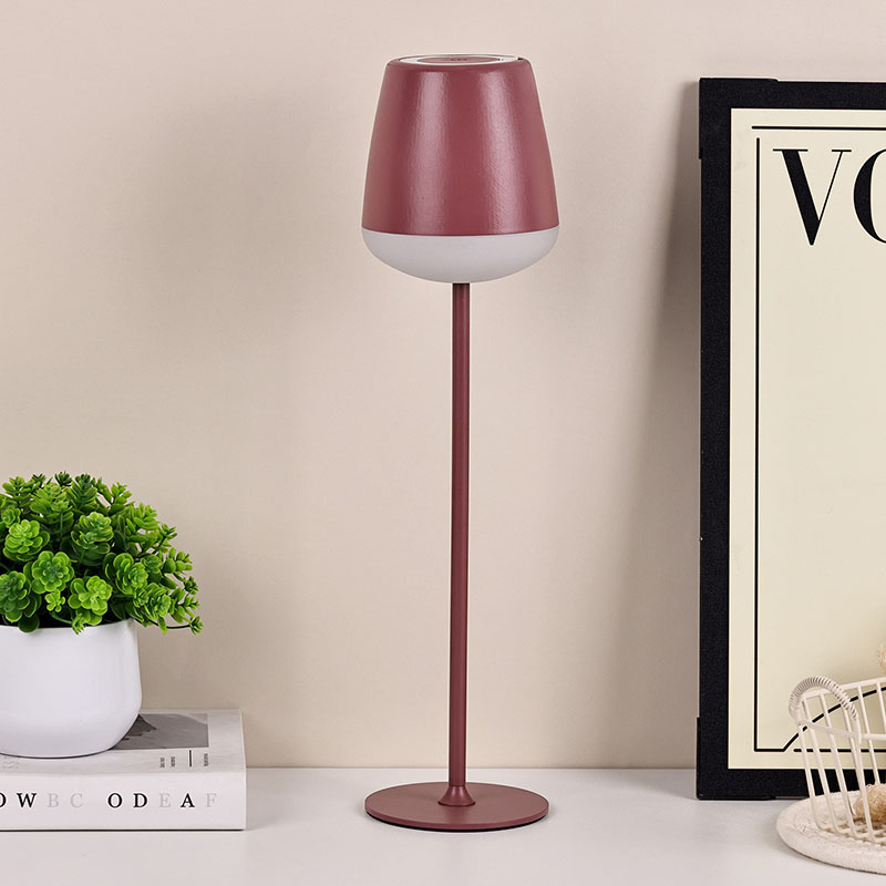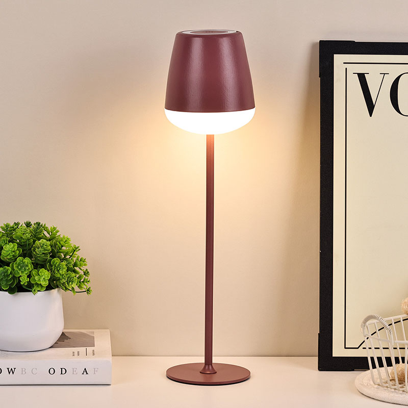 रेड वाईन हायफूट ग्लास शेडचा लेड डेस्क लॅम्प सोयीस्कर बॅटरी पॉवर सप्लाय सिस्टमसह सुसज्ज आहे, याचा अर्थ तुम्हाला आता सॉकेट शोधण्याची काळजी करण्याची गरज नाही. तुम्ही दिवाणखान्यातील सोफ्यावर तात्पुरते वाचत असाल किंवा बाहेरच्या कॅम्पिंगच्या रात्री उबदार वातावरण तयार करत असाल, फक्त बॅटरी हळुवारपणे स्थापित करा आणि ती लगेच उजळेल, तुम्हाला चमक येईल.