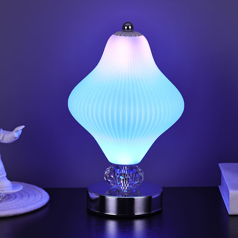 त्याच्या अद्वितीय लॅम्पशेड डिझाइन व्यतिरिक्त, या लहान डेस्क दिव्यामध्ये इंद्रधनुषी RGB रंग कार्यक्षमता देखील आहे. प्रगत एलईडी तंत्रज्ञानाद्वारे, लाइटिंग फिक्स्चर मऊ आणि एकसमान प्रकाश सोडू शकतात आणि विविध दृश्ये आणि गरजांनुसार प्रकाशाचा रंग मुक्तपणे समायोजित करू शकतात. तुम्ही तुमचा आवडता रंग निवडू शकता किंवा रंगीबेरंगी व्हिज्युअल मेजवानी तयार करण्यासाठी लाइटिंग फिक्स्चर आपोआप रंग बदलू शकतात.
