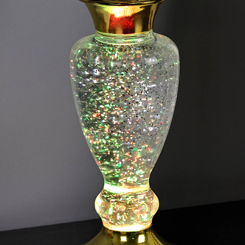 स्वप्नाळू द्रव प्रवाह प्रभावाव्यतिरिक्त, या सजावटीच्या दिव्यामध्ये RGB रंग बदलण्याचे कार्य देखील आहे. प्रगत एलईडी तंत्रज्ञानाद्वारे, लाइटिंग फिक्स्चर मऊ आणि एकसमान प्रकाश उत्सर्जित करू शकतात आणि विविध दृश्ये आणि गरजांनुसार प्रकाशाचा रंग आणि चमक मुक्तपणे समायोजित करू शकतात. बेस आणि लिक्विडचा रंग संगीताच्या लय आणि वातावरणाशी समक्रमितपणे बदलेल, ज्यामुळे प्रकाश आणि सावलीच्या विणकामाची दृश्य मेजवानी तयार होईल. हा सजावटीचा दिवा उच्च-गुणवत्तेच्या पारदर्शक काचेच्या साहित्याचा बनलेला आहे, ज्यामध्ये चांगली पारदर्शकता आणि टिकाऊपणा आहे. पारदर्शक काचेच्या बाटल्या केवळ लाइटिंग फिक्स्चरची स्थिरता आणि सुरक्षितता सुनिश्चित करत नाहीत तर बाह्य वातावरणाच्या प्रभावाचा प्रभावीपणे प्रतिकार करतात आणि प्रकाश फिक्स्चरचे सेवा आयुष्य वाढवतात. या व्यतिरिक्त, पारदर्शक काचेच्या बाटल्यांमध्ये उष्णतेचा अपव्यय करण्याची कार्यक्षमता देखील चांगली असते, जे दीर्घकालीन वापरादरम्यान दिवे जास्त गरम होणार नाहीत याची खात्री करतात आणि तुमच्या सुरक्षिततेची हमी देतात.