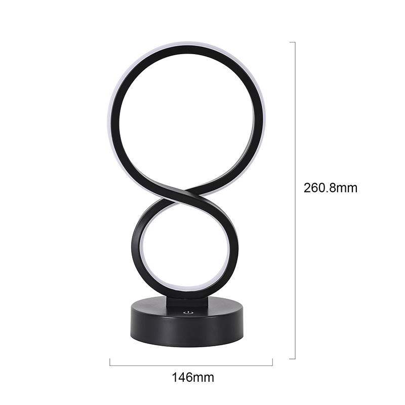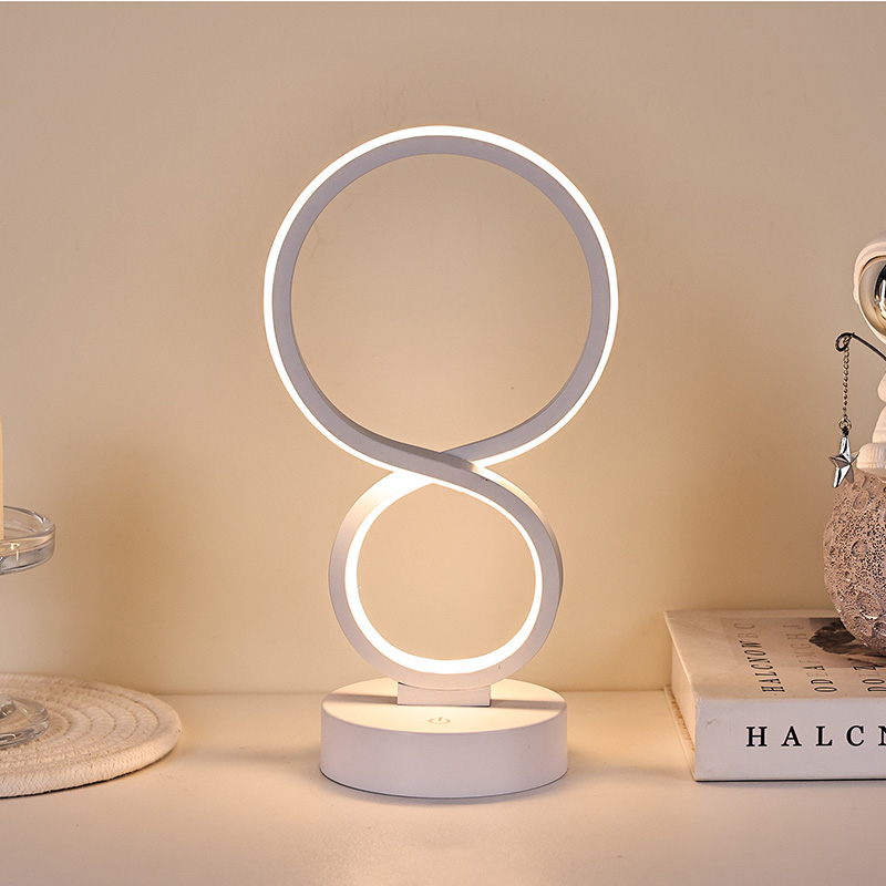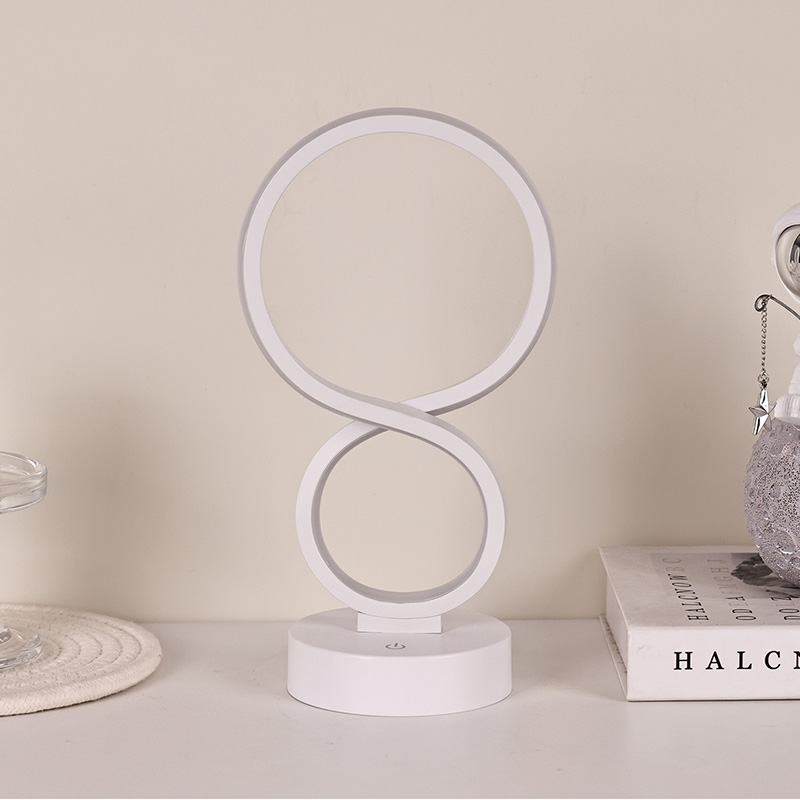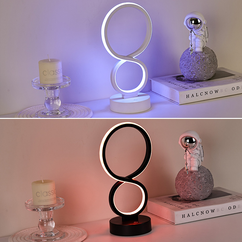 अनंततेच्या प्रतीकाने प्रेरित, अनंतकाळ आणि अभिसरणाच्या सौंदर्याचे प्रतीक असलेल्या, गुळगुळीत रेषा एक मोहक 8-आकाराच्या सिल्हूटची रूपरेषा देतात. धातू आणि उच्च-गुणवत्तेचे प्लास्टिक यांचे मिश्रण उबदार तंबूसह एक नाजूक पोत तयार करते. बेडरुम, बेडसाइड, डेस्क कॉर्नर किंवा लिव्हिंग रूमच्या कोपऱ्यात ठेवलेले असो, ते एक आकर्षक लँडस्केप आहे जे घरात आधुनिक कलात्मक वातावरण जोडते.
