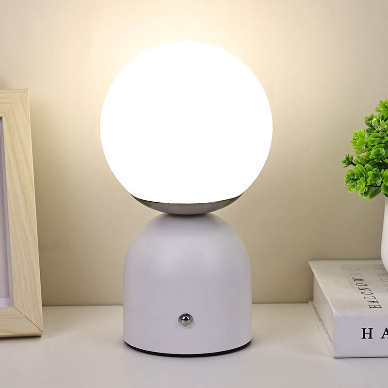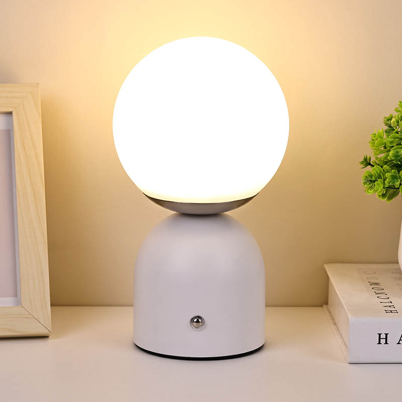 बॅटरी रिचार्ज करण्यायोग्य असलेल्या लहान टेबल लॅम्पमध्ये बेसखाली स्विच कंट्रोल असते