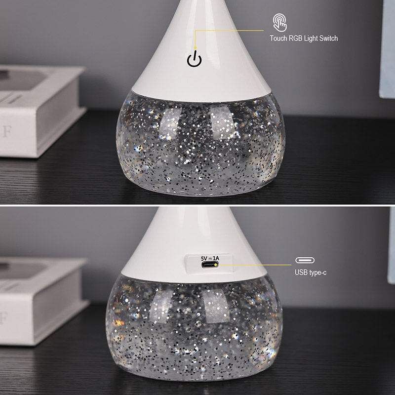 गुळगुळीत प्लॅस्टिक पृष्ठभाग सजावट डेक दिव्यामध्ये मागील बाजूस प्रकाश सिद्ध करण्यासाठी 5v1a पॉवर इनपुट आहे आणि पृष्ठभागावर स्पर्श नियंत्रण आहे.