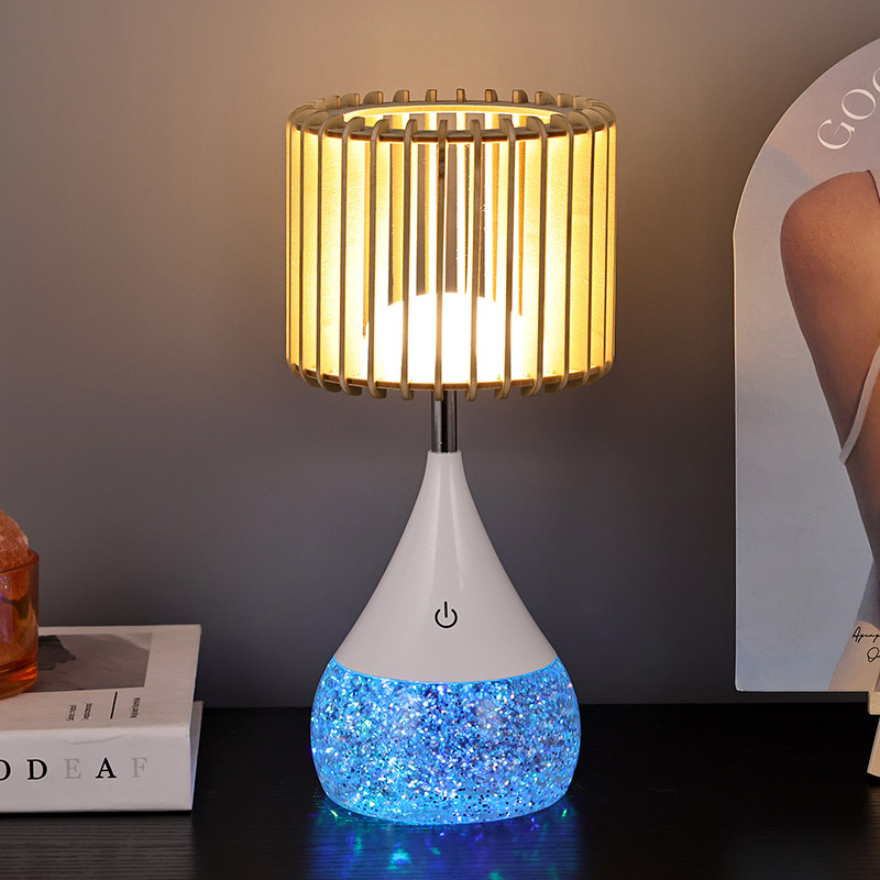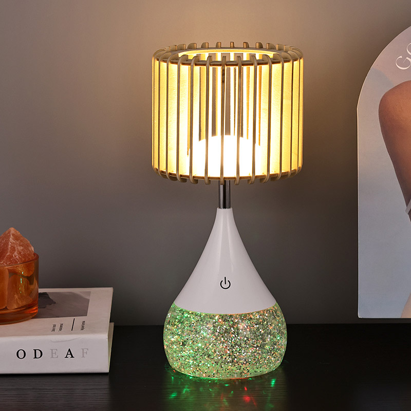 उच्च-गुणवत्तेची प्लास्टिक सामग्री आणि नैसर्गिक लाकूड स्लॅट्सपासून बनविलेले, नवीन डिझाइन एलईडी टेबल लॅम्प टिकून राहण्यासाठी तयार केले आहे. बळकट बेस स्थिरता सुनिश्चित करतो, ज्यामुळे तुम्हाला कोणत्याही पृष्ठभागावर काळजी न करता ठेवता येते. टिकाऊ बांधकामाचा अर्थ असा आहे की हा दिवा दैनंदिन वापराचा सामना करू शकतो, ज्यामुळे तो आपल्या सजावटमध्ये एक विश्वासार्ह आणि दीर्घकाळ टिकणारा जोड बनतो.