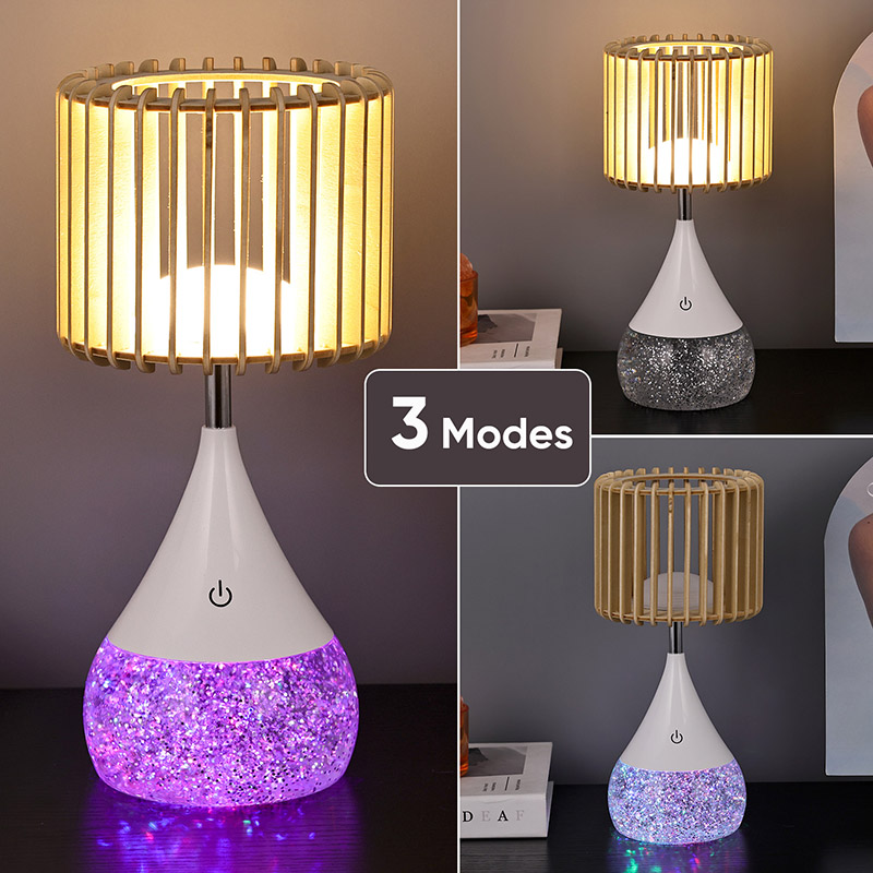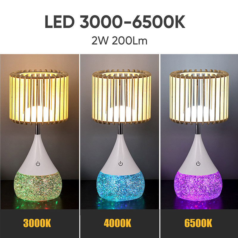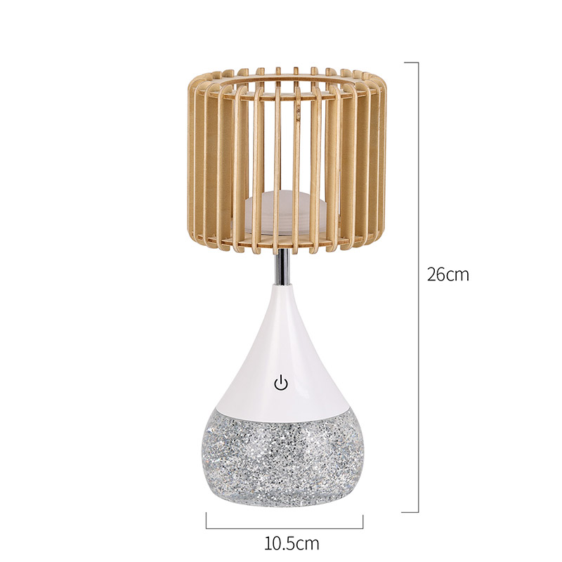 अचूकतेने तयार केलेल्या, नवीन डिझाइन एलईडी टेबल लॅम्पमध्ये टिकाऊ प्लास्टिक सामग्रीपासून बनविलेले एक आकर्षक आणि मोहक डिझाइन आहे. लॅम्पशेड नैसर्गिक लाकडाच्या स्लॅट्सपासून बनविलेले आहे, जे दृश्यास्पद आणि आधुनिक स्वरूप तयार करते. तुम्ही तुमच्या डेस्कवर, बेडसाइड टेबलवर किंवा इतर कोणत्याही पृष्ठभागावर ठेवा, हा दिवा नक्कीच मोहक आणि आनंदित करेल.