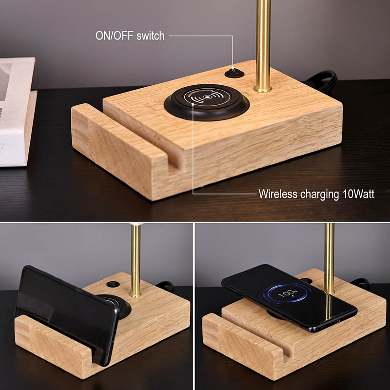वायरलेस चार्जिंग 10Wattशैली आणि कार्यक्षमतेने तुमची जागा उंच करा: पारंपारिक नैसर्गिक शैली एलईडी टेबल लॅम्प